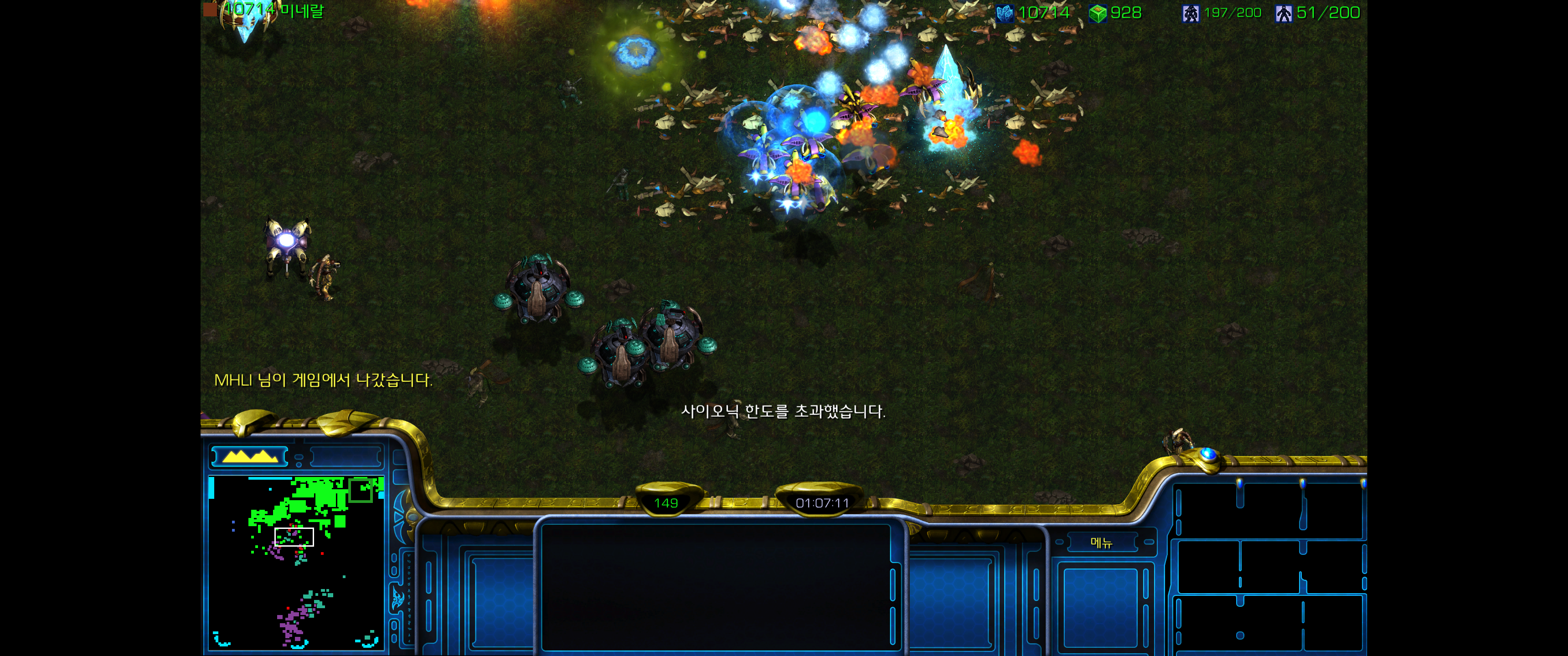 상대가 무한정 공격해 들어오니, 우리편 플레이어들이 돈 관리를 못하고 미네랄에 허덕이다가